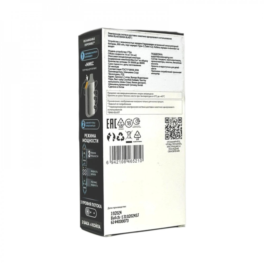 Технические характеристики WAKA BLAST 38000 Hard - Клубника киви + лед микс